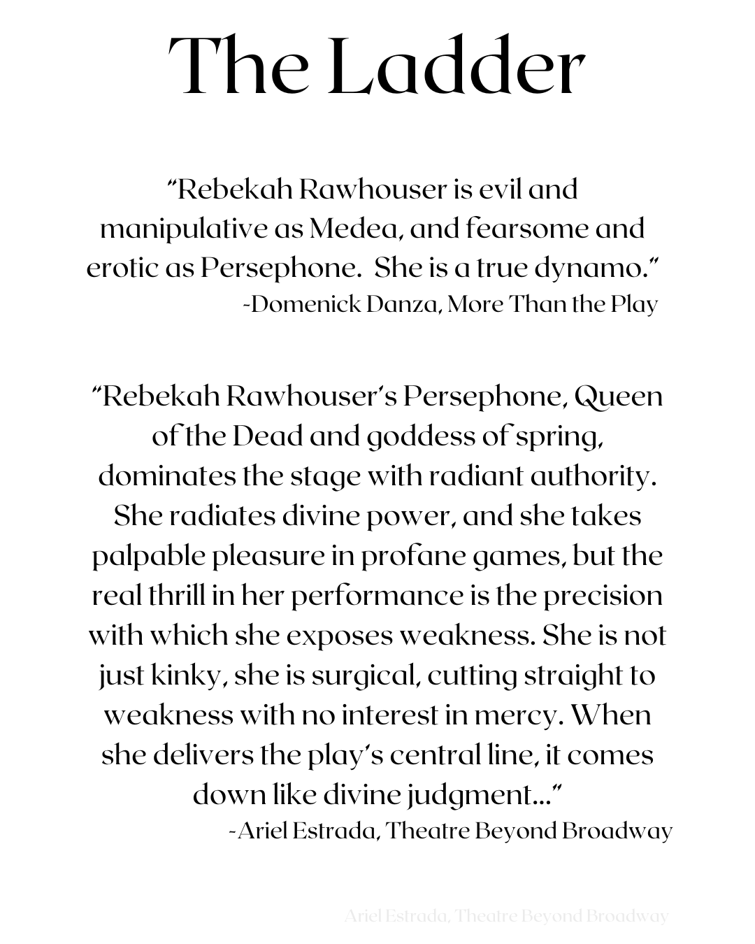 “Whatever you might have heard about the musical, you have to see and hear for yourself Rawhouser’s performance. Her voice is haunting and her portrayal of Diana is heartbreaking, somewhat like an open wound that won’t heal... Hers is a performance that is simply electrifying, real and painful.”